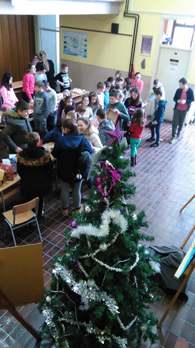 Идејни творац новогодишњег сајма су ученици 5/2 одељења, који су у сарадњи са одељењским старешином, Тамаром Бањац, позвали на учешће и остале ученике. Ученици првог, четвртог, петог и шестог разреда су донели своје рукотворине, које су израдили сами или са својом породицом ( божићне слане и слатке колачиће, украсе за јелку, миришљаве сапуне...). Конкуренција је била веома велика. Деца су се дружила и уживала. Новац од продаје биће употребљен за набавку књига за школску библиотеку.
