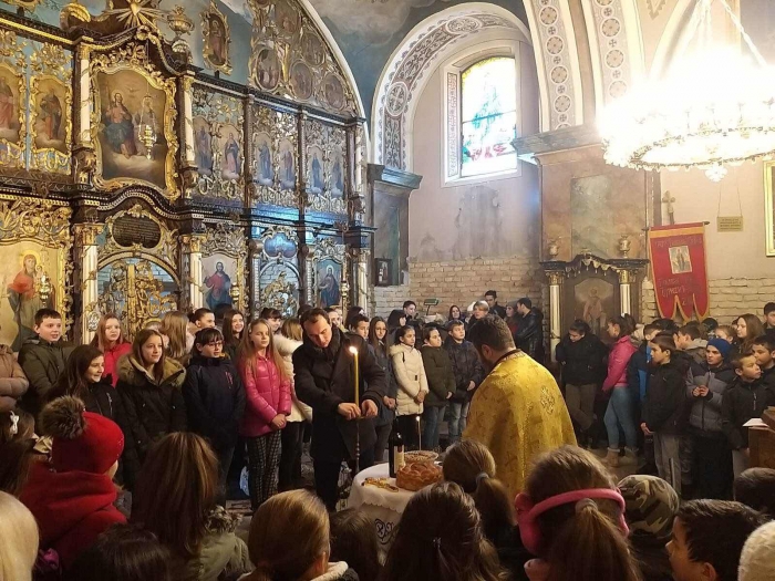 Сабрани у духу заједништва и свесни величине светосавског дана, ученици су приказали делове из живота нашег највећег светитеља и верно дочарали ликове из давнина. Причу светосавског живота пратиле су хорске нумере духовног карактера. Црква је била пуна баш као што и треба да буде сабрање, пуна деце, наставника, учитеља, који су дошли да узму учешћа у свечаном дару. Присуство су увеличале прошлогодишња кума, Биљана Инђић и овогодишња кума, др Драгана Мрђенов. Свечаном предајом славског колача кумство је предато на даљи благослов. У молитвеном миру и великој љубави према светосављу и образовању, свој допринос, огроман труд, подршку личног напретка, добрих односа пружила је директорица школе, Јелена Милић. Након приредбе сви ученици су отишли кући, а гости и колектив школе су у црквеној општини наставили прославу уз разговор и послужење припремљено за школску славу.
