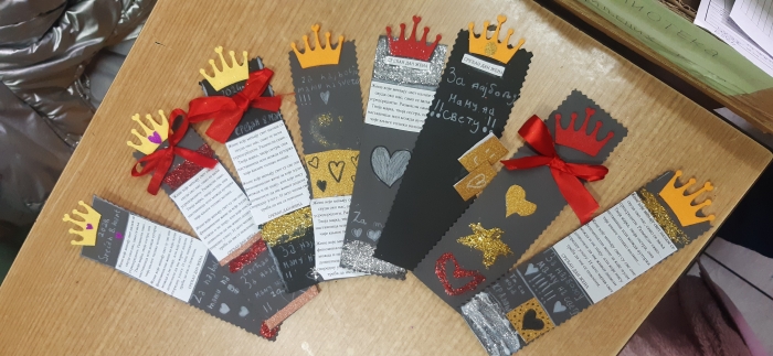 Ученици су са наставницом српског језика и библиотекарком, Тамаром Бањац анализирали песму Душка Радовића „Мама“. Иако мајке често јесу чистачице, куварице, лекарке, учитељице, свака мајка као да је завршила и школу за брижност, лепе речи и разумевање. Закључак радионице је да су све маме краљице и да им то морамо говорити сваког дана, јер чине много за нас. Ученици су мајкама с тим поводом направили обележиваче за књиге.